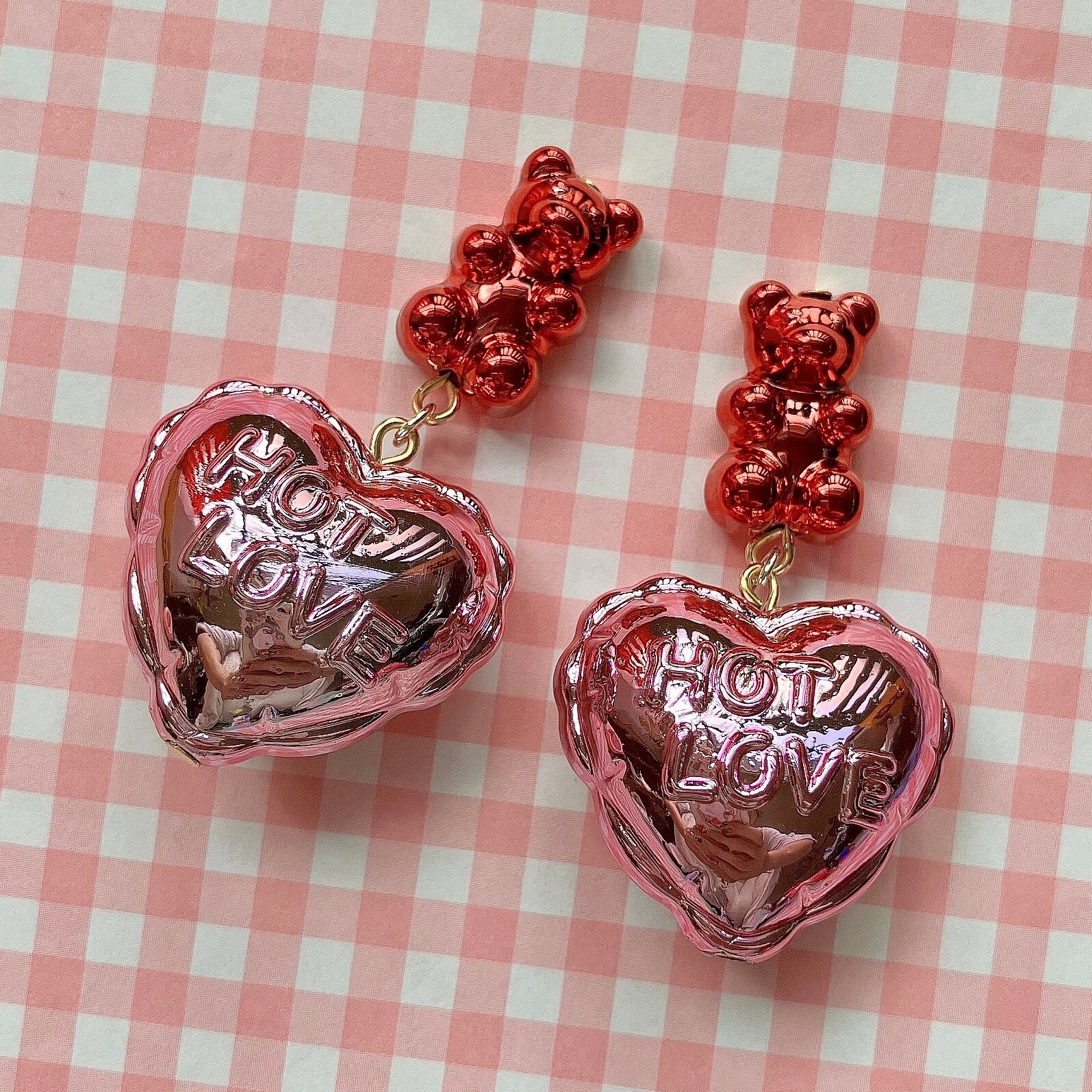 メタリックなグミベアと、ハートバルーンのピアス/イヤリング。
