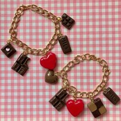 4粒のチョコレートと、お馴染みの粘土製ハートが揺れるチェーンブレスレット。
