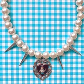 ハートのメタルチャームが揺れるパールネックレス。