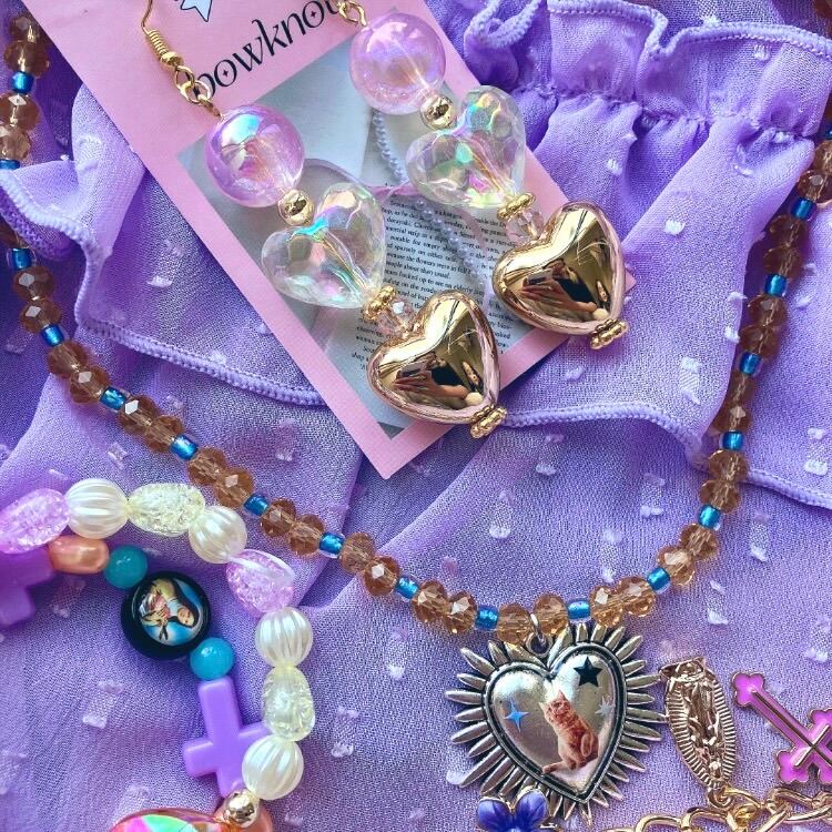 靄感のあるオーロボール、オーロラクリアカラーの多角ハート、つるんとしたメタリックハート、それぞれ違ったキラキラが楽しめます。