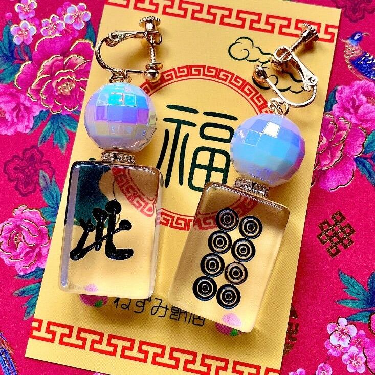 ねずみ飯店より、リアルサイズの麻雀牌が揺れる耳飾り。