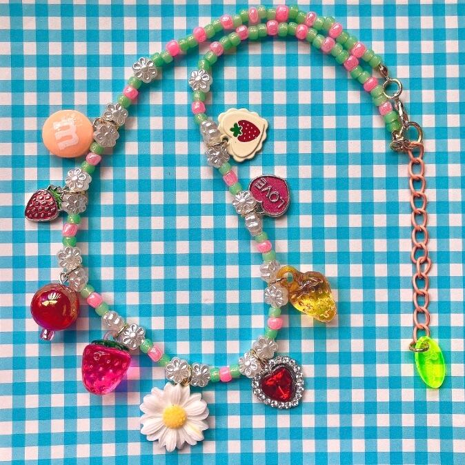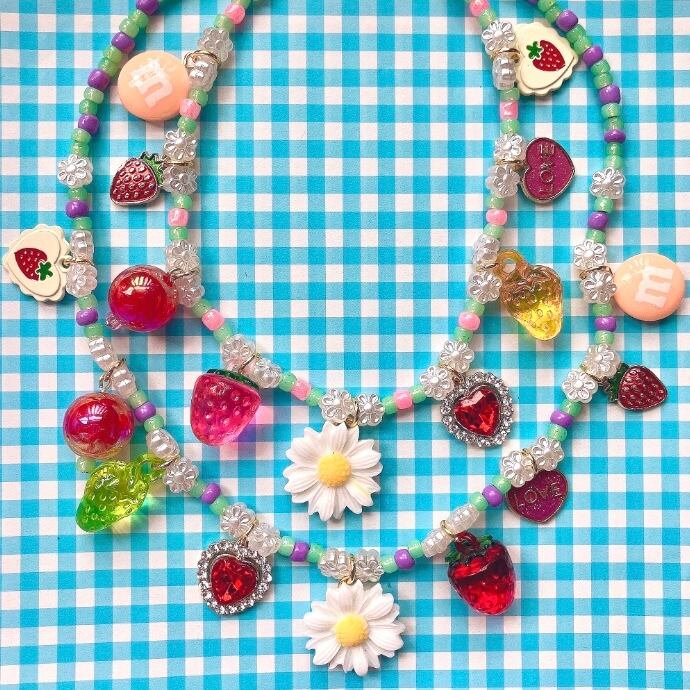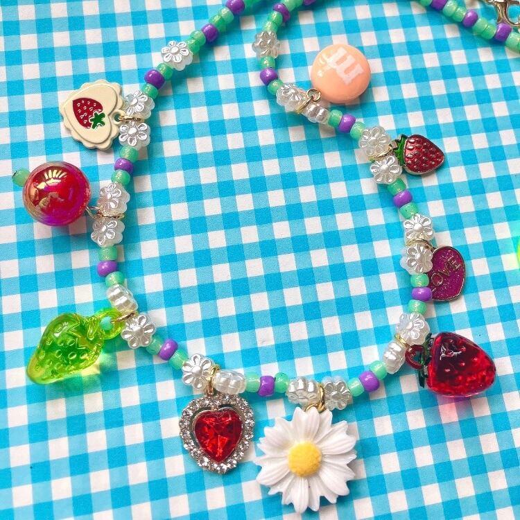 いろんな苺やお花、おやつのチョコレートまでぶらさげたよくばりなあなたへ♡