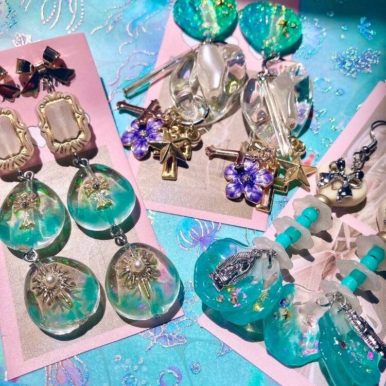 ※フックピアス、ネジバネ式イヤリングよりお選びいただけます。