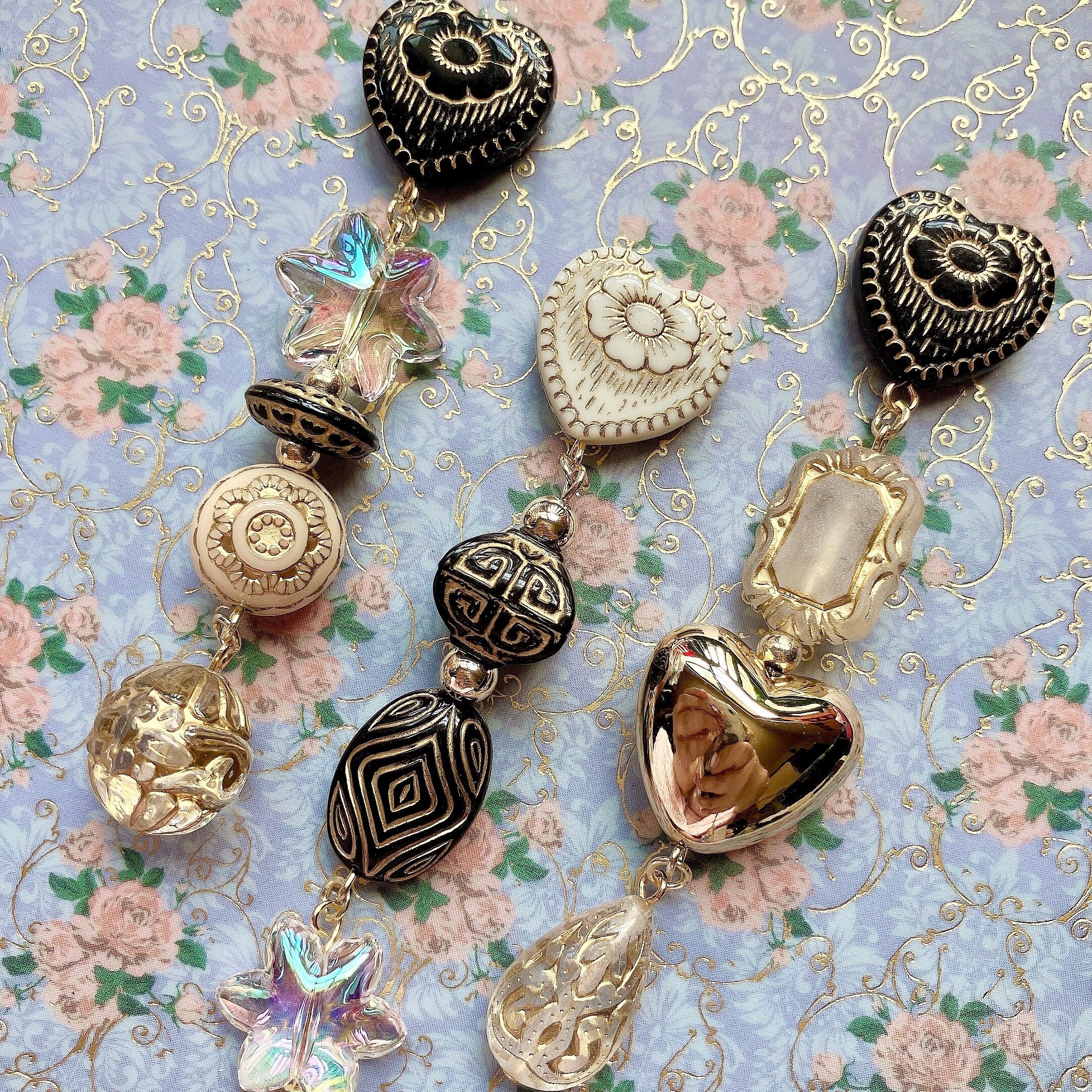 モノトーンを基調としたアンティーク風ビーズを組み合わせたデザインはどれを組み合わせてもまとまります。