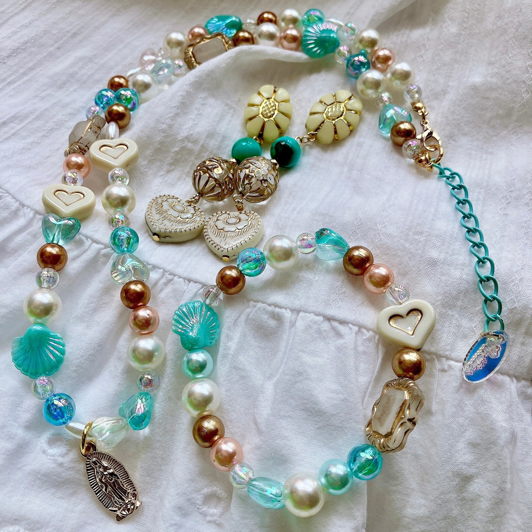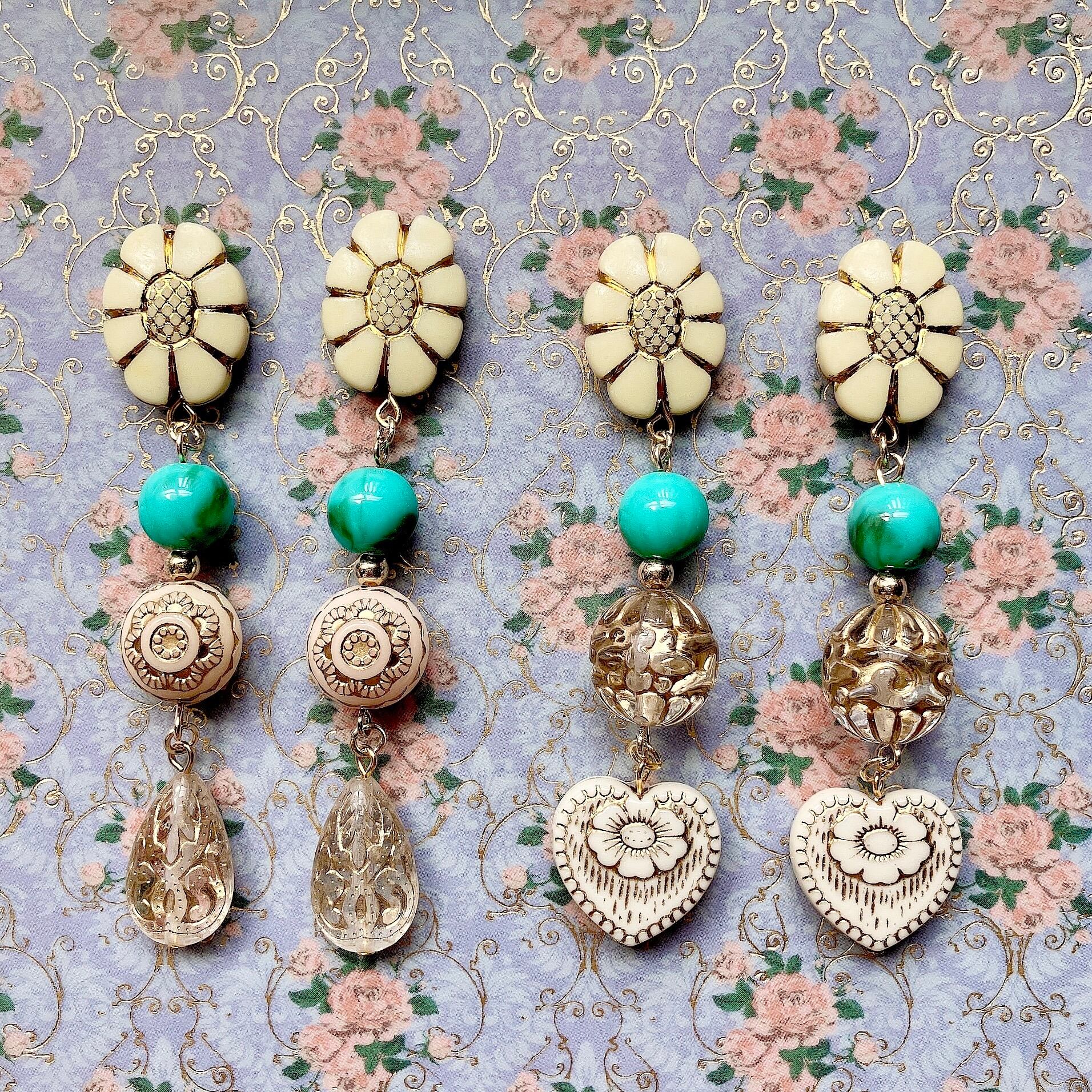 アンティーク風オフホワイトやクリアにターコイズをひと粒。