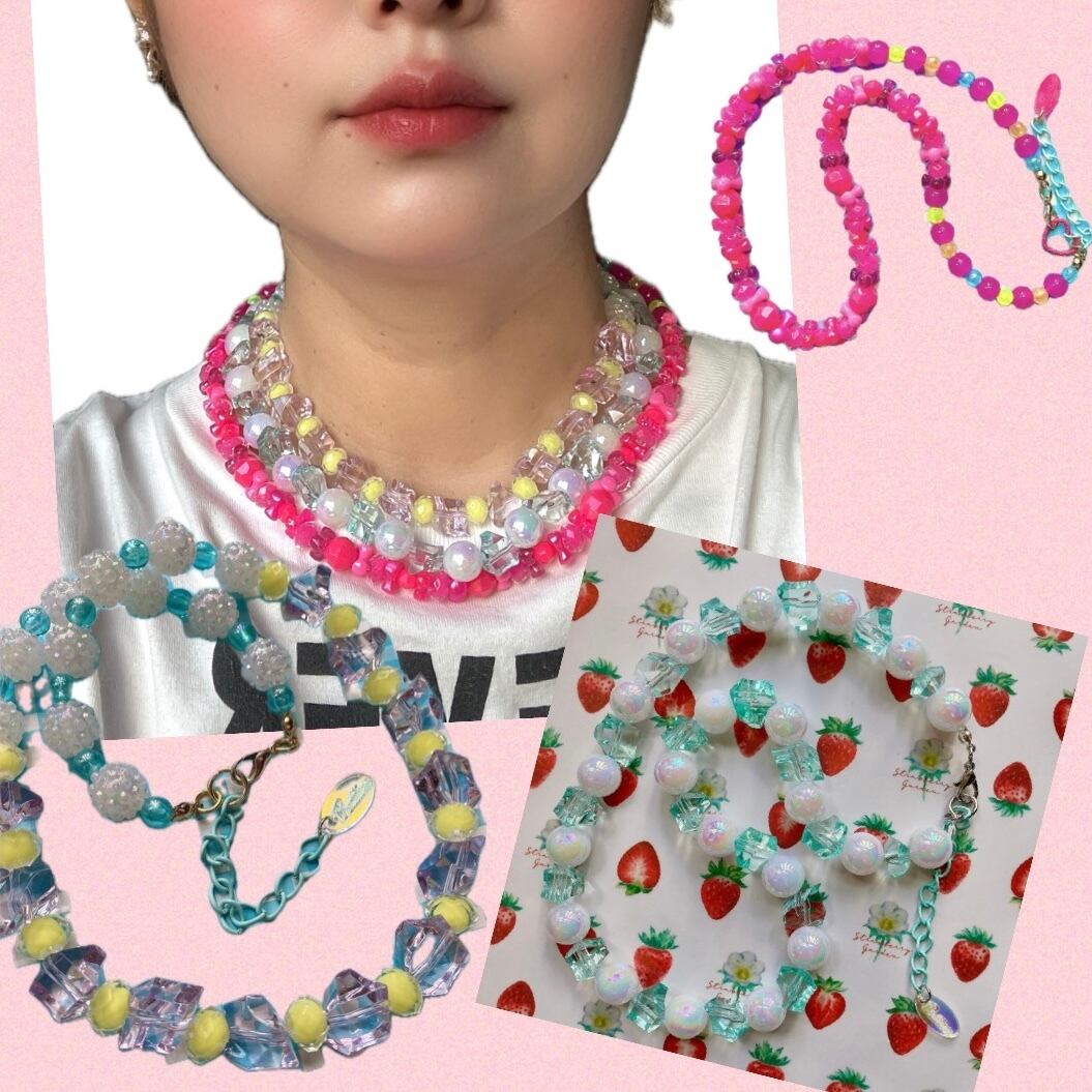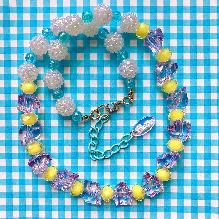 きらきらとした雨露や、紫陽花をイメージしたショートネックレス。
