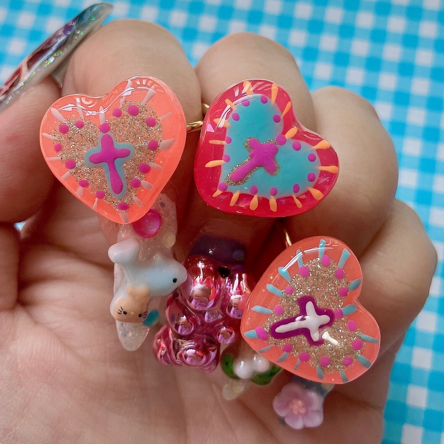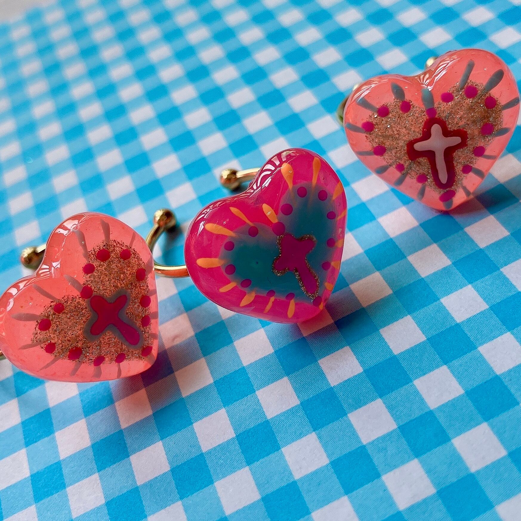 ゼリーのような透け感あるベースにそれぞれのハートに合わせたカラーリングと、レジンコートによるちゅるんと艶やかな仕上がりとなっております。