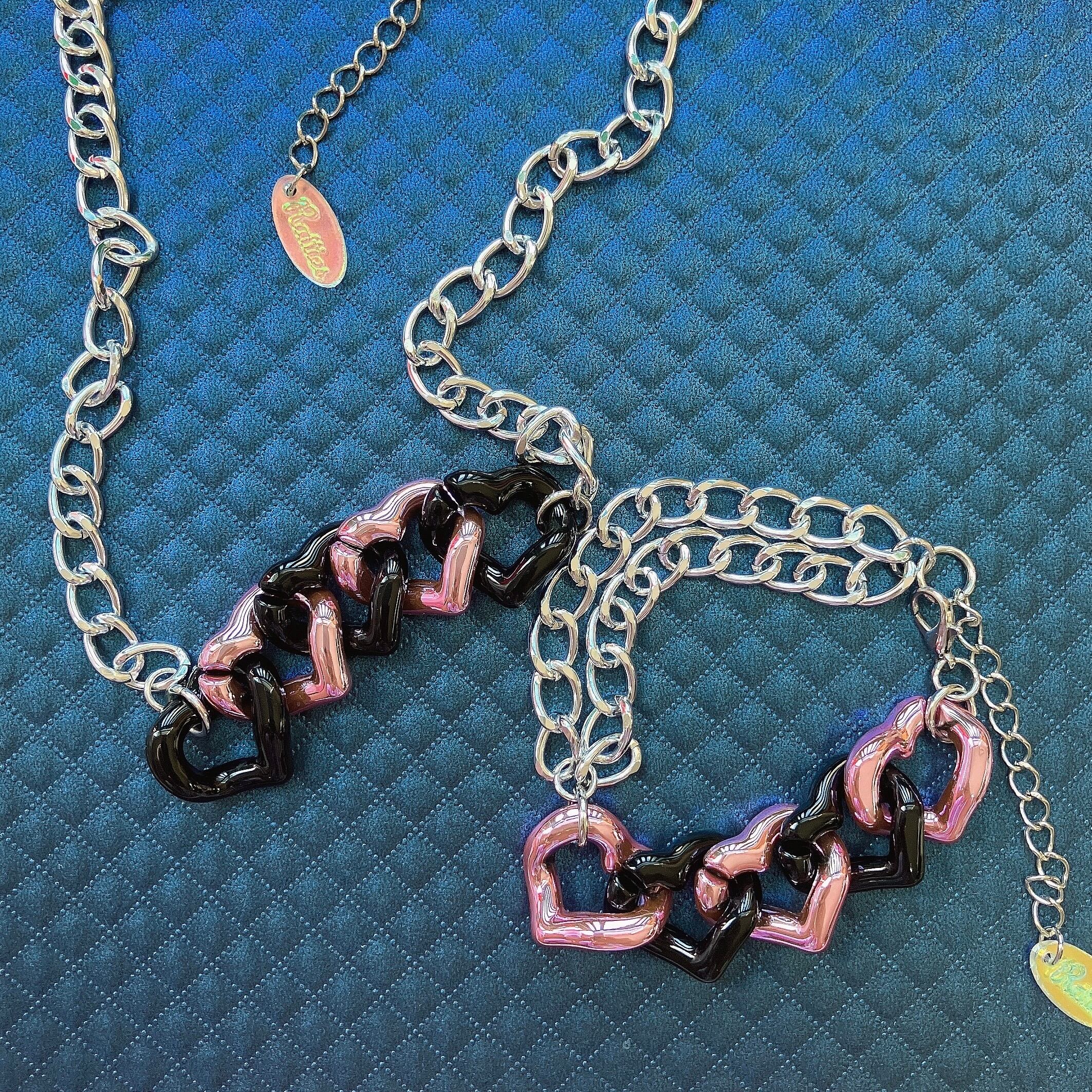 ハート型プラスチックチェーンを5つ連ねたアルミチェーンの二連ブレスレット
