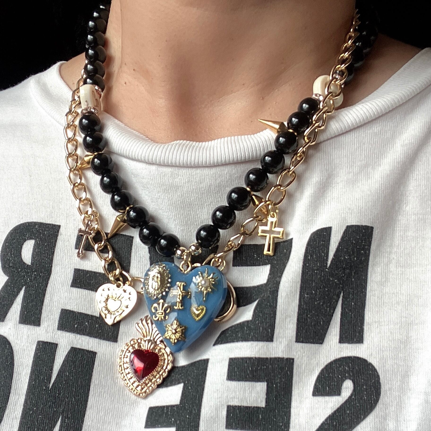 お揃いのブレスレットと合わせたり、十字架やハートのネックレスなどとの重ね付けもおすすめです♡