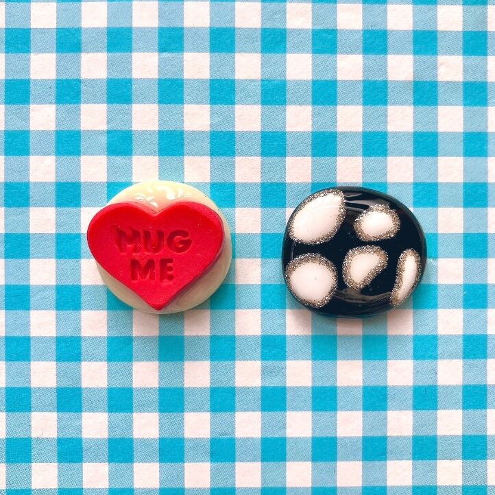 ※粘土はひとつひとつ手作業で形成した後、レジンコーティングしております。(赤いキャンディハーツのみ質感を残すため未コーティングです)