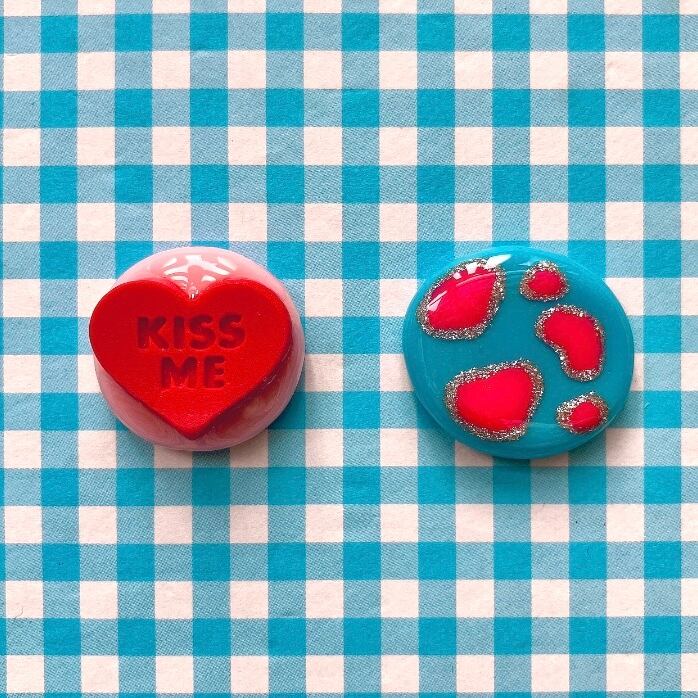 ※粘土はひとつひとつ手作業で形成した後、レジンコーティングしております。(赤いキャンディハーツのみ質感を残すため未コーティングです)