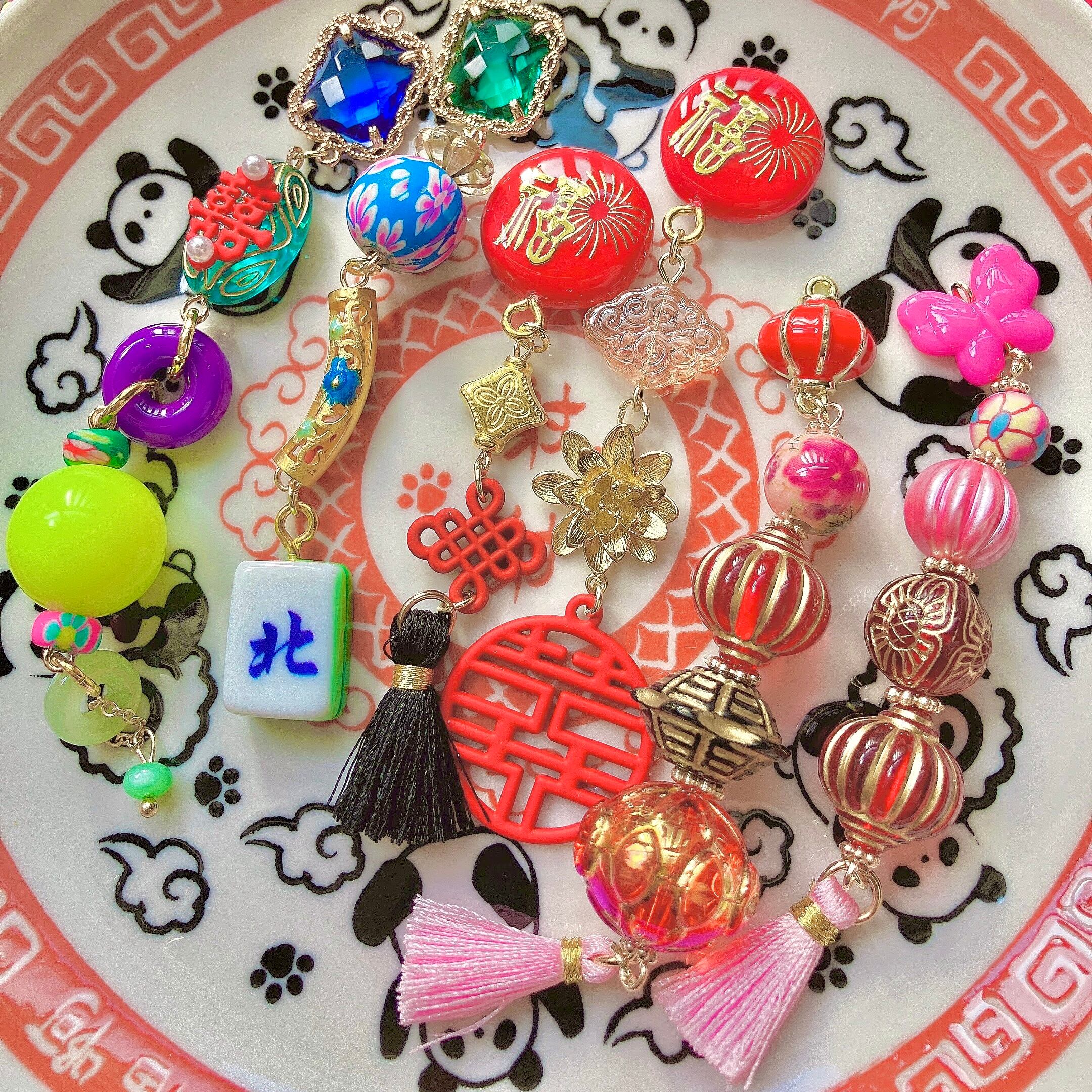 タッセルを使用したものや、ランタン・燈籠をイメージしたもの、人気の桃や雀牌など、色とりどりのパーツを組み合わせた耳飾りをお楽しみください。