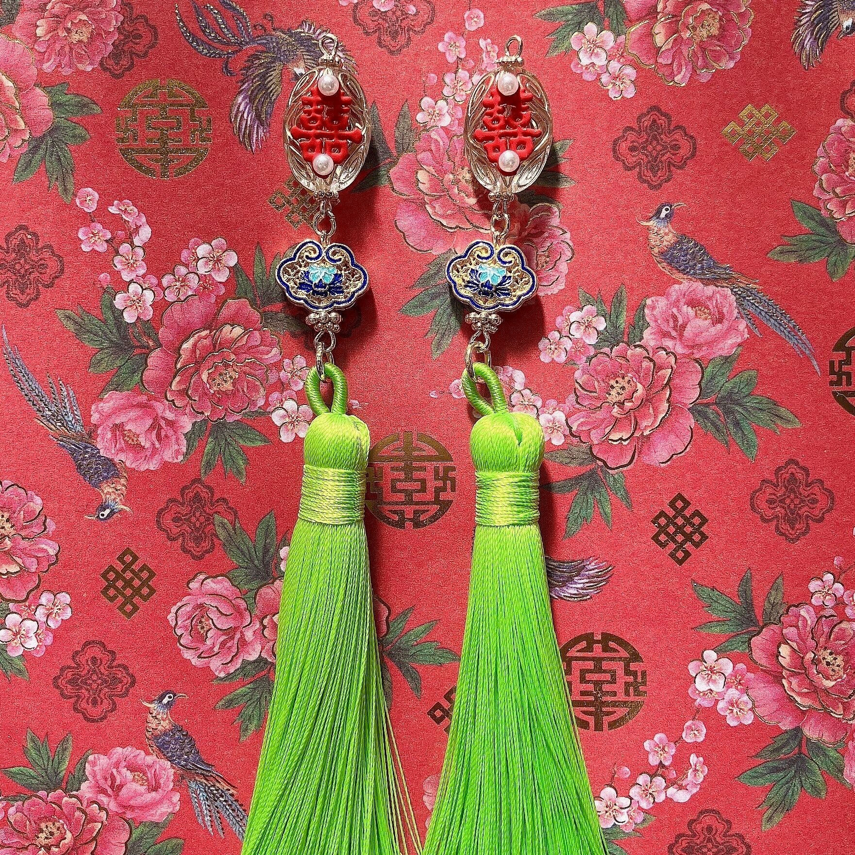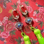 タッセルを使用したものや、ランタン・燈籠をイメージしたもの、人気の桃や雀牌など、色とりどりのパーツを組み合わせた耳飾りをお楽しみください。