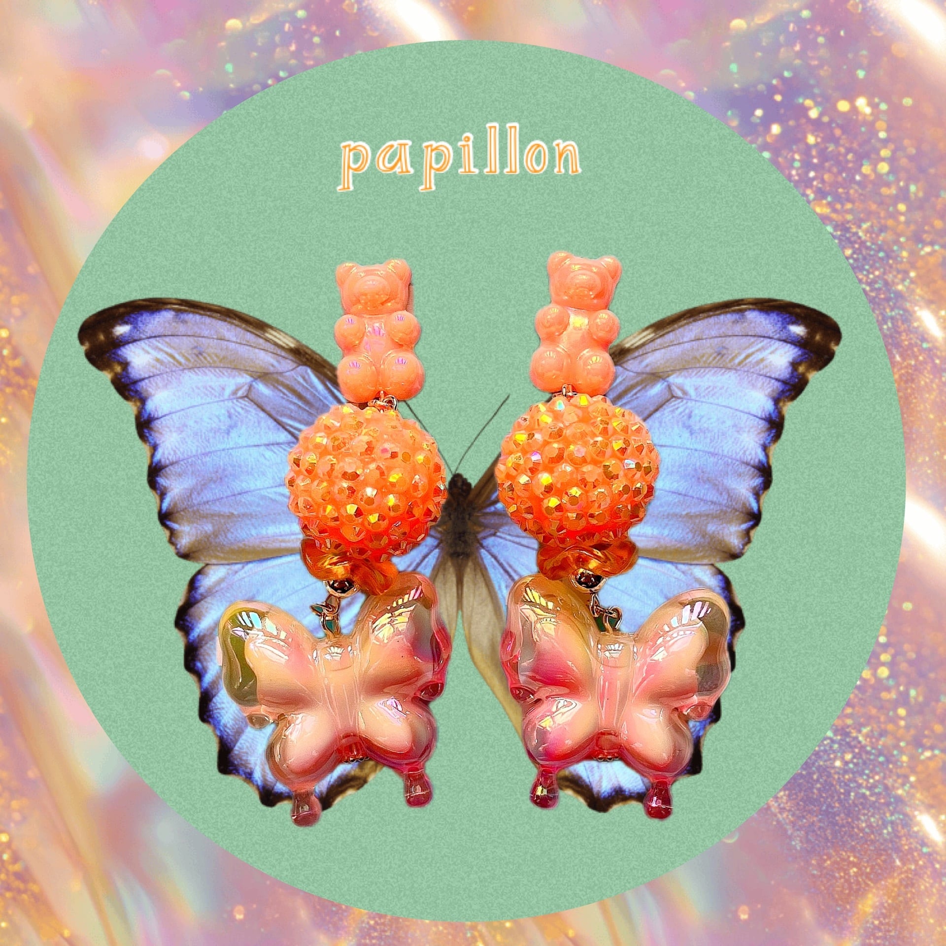 うる艶グラデーションカラーのぷっくりとした蝶々のイヤーアクセサリー。