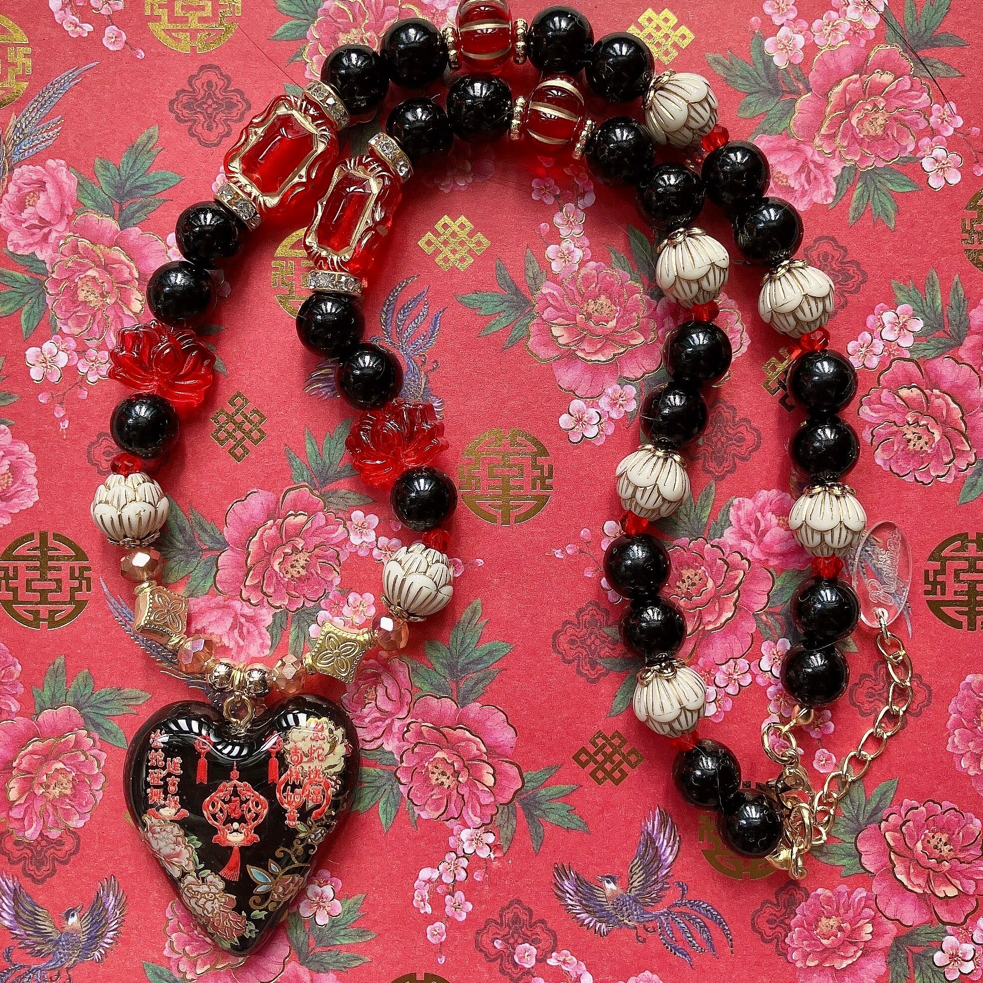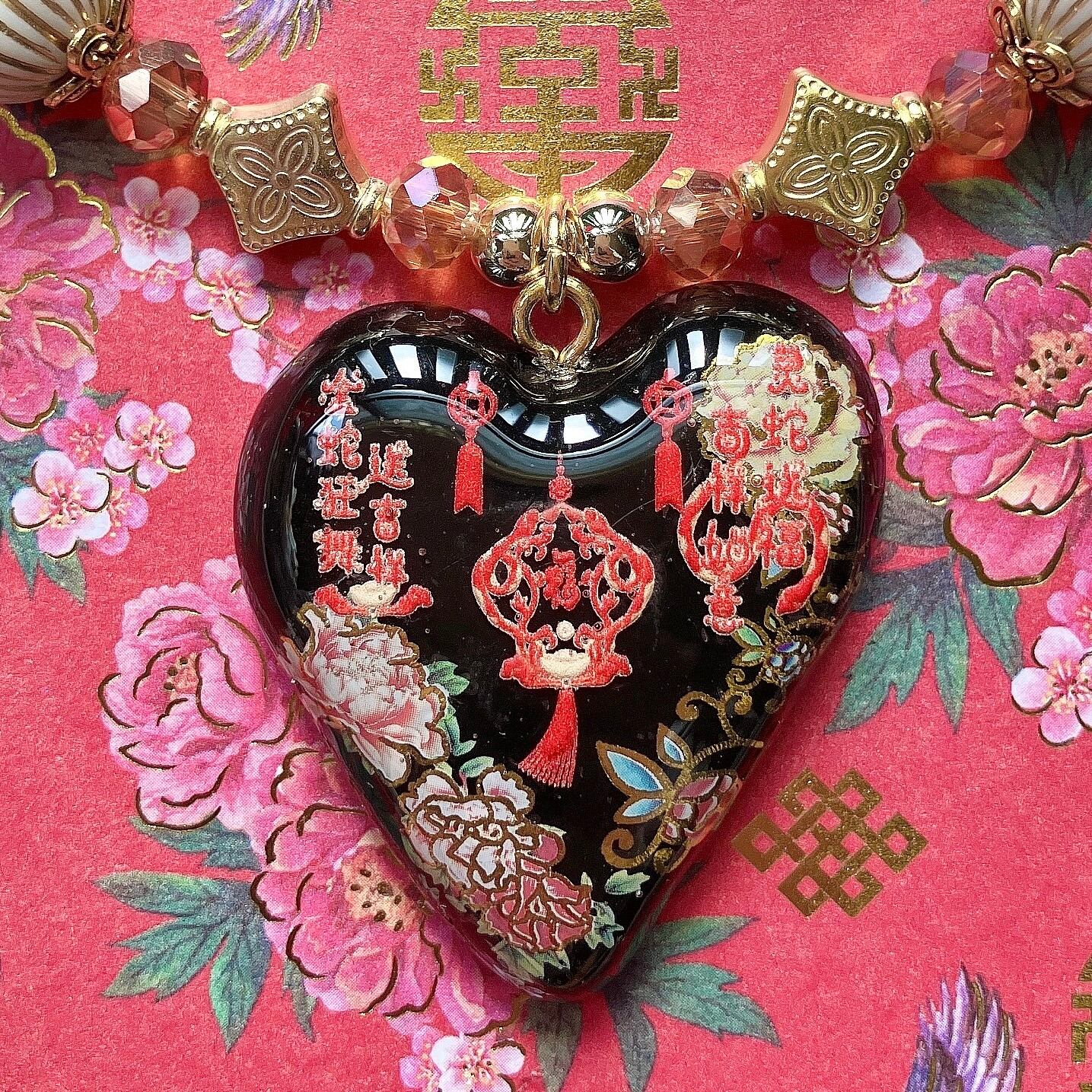 ハートのトップは牡丹を背景に中華飾りを重ねています。